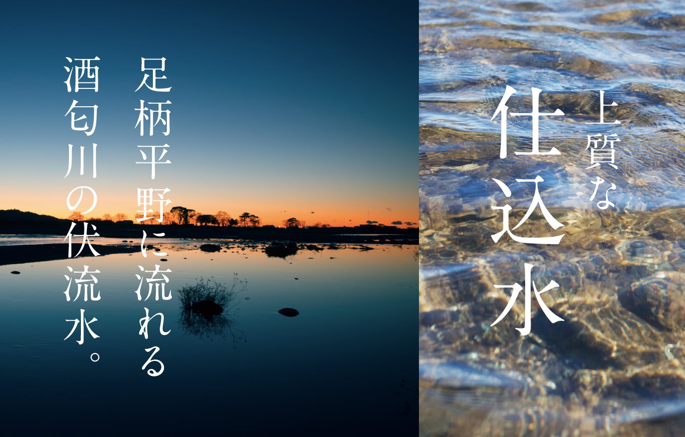 仕込み水:神奈川県足柄平野に流れる酒匂川の伏流水(硬水)を用いています。