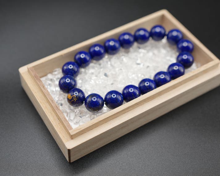 - 深い紺に金が瞬く、宇宙を思わせるラピスラズリ。知恵と守護を宿す[青の王石]
