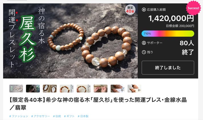 ブレスレットはいずれも限定数でのご用意となり、プロジェクト終了後に通常販売した分もおかげさまで完売いたしました。