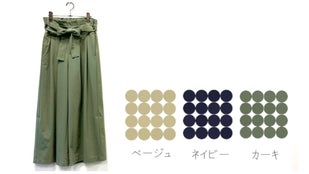 ベージュ、ネイビー、カーキのコーディネートしやすい3色展開です。