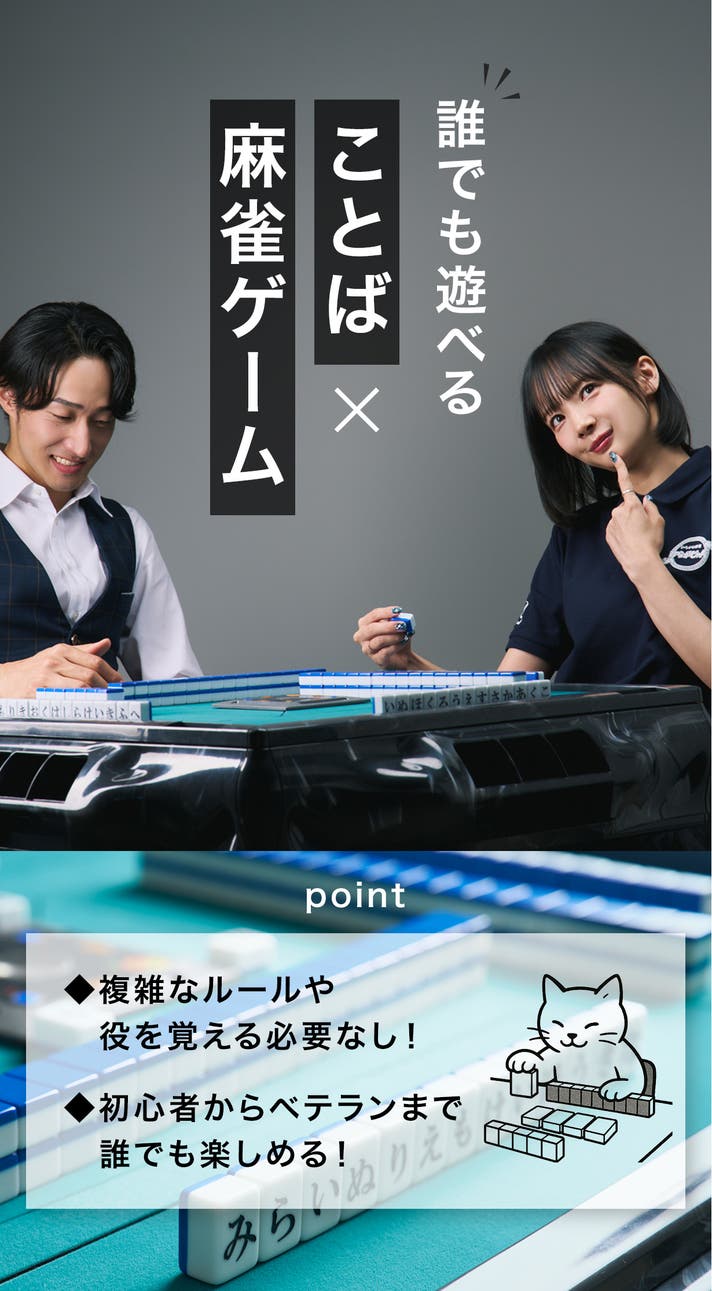 ひらがなで単語を作るというシンプルなルールはそのままに、麻雀の緊張感と駆け引きを再現!