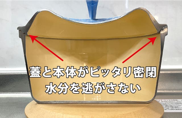 蓋と本体のすき間は100分の1ミリ以下!!『水無し調理』ができるんです。