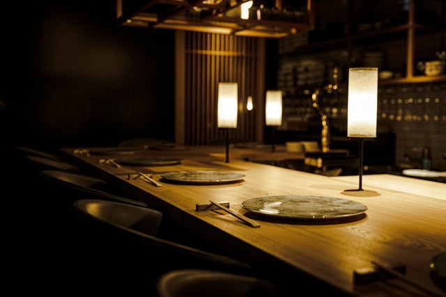 店内は、ほのかに行燈が明かりを灯す、洗練された和モダンな空間。