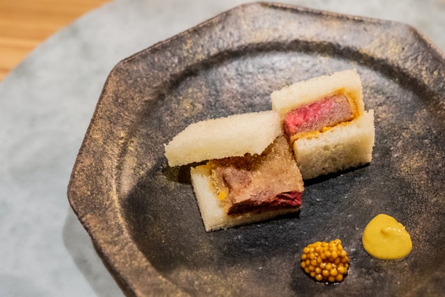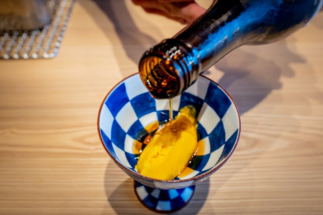 パティシエ出身のシェフ鈴木は【まだお客様が食べたことのないデザートを】と時にはジャムになる寸前のフルーツを黒胡麻やアイスクリームと併せたり、自家製のマンゴージェラートに12年熟成された(みりん)を冷凍させ、メープルシロップよりもコクと深みの強いソースとして提供する。