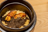 フォアグラの旨味とトリュフの芳醇な香りを掛け合わせたご飯を、丸みのあるブイヨンスープで炊き上げることによってまとまりの良いバランスに仕上げた贅沢な1品。