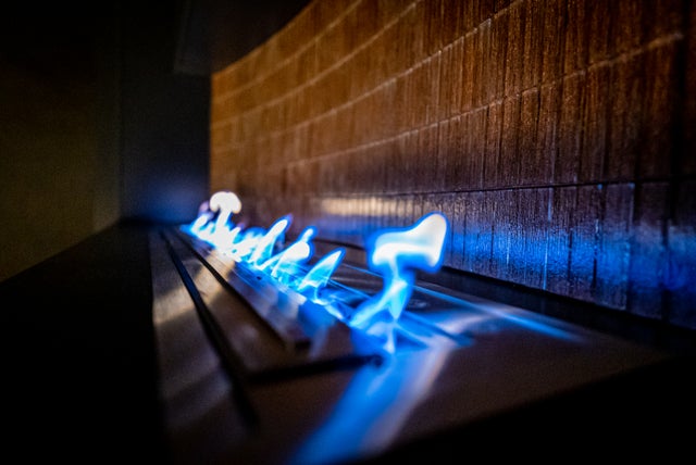 店内を唯一照らす、炎の光はお酒を飲む人の姿を一段と輝かせます。