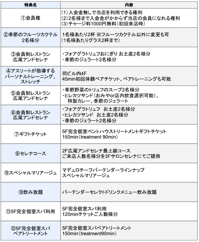 (2)広尾アンドセレナご来店人数様分入会金がかからず当店の会員になれる権利