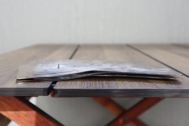 A.熱による反り・歪みは出てきます。下の写真は燃焼テストを72時間した後のものですが、組み立て可能な範囲です。また、平板の厚みは0.8mmで「厚過ぎず、薄過ぎず」の厚みなので軽度な反りは手力のみで修正することが可能です。