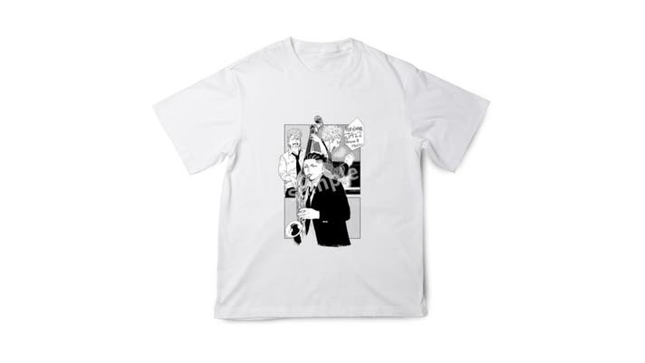 平川哲弘による「じゃズメン」オリジナルデザイン。ここでしか購入できない商品です。Tシャツのボディカラーは白でデザインは黒でプリントします。