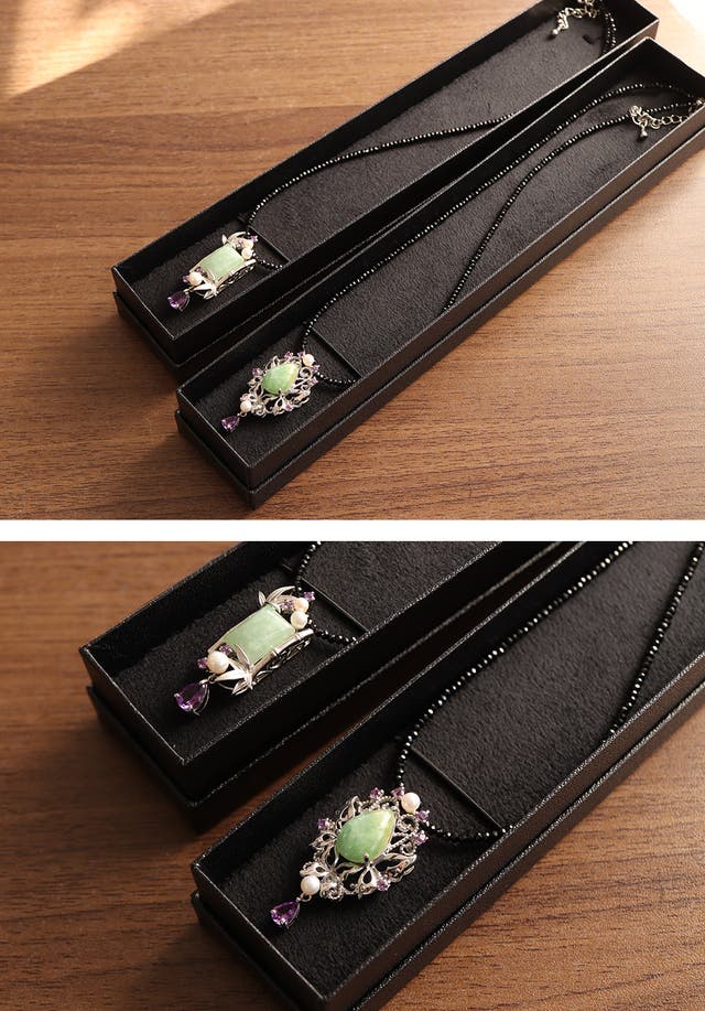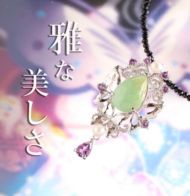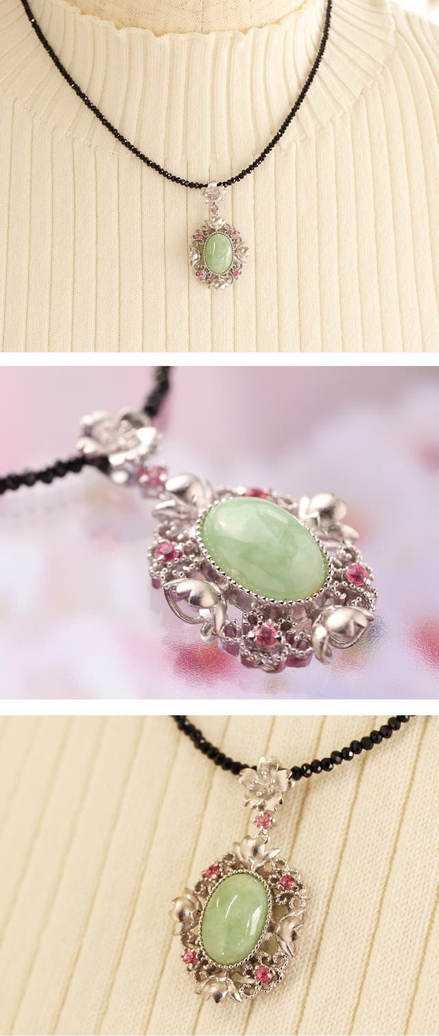 - 古来より人々を魅了してきた美しい宝石「翡翠」を和風なデザインに仕立てたネックレス