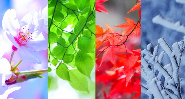 日本の四季折々の彩りは、春は花、夏は朱夏、秋は白秋、冬は玄冬など、自然の風景や色合いによって表現されています。