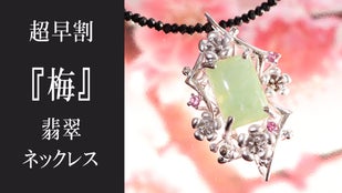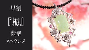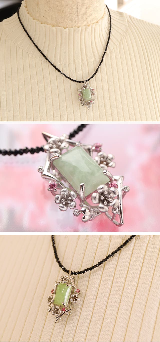 清らかな翡翠の輝きを、愛らしい梅の花が優しく包み込む、繊細で上品なネックレスです。