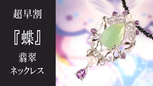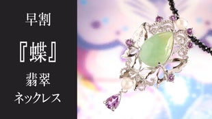 清らかな輝きを放つ翡翠を、優雅な蝶の羽が包み込む、幻想的な和風ペンダントです。