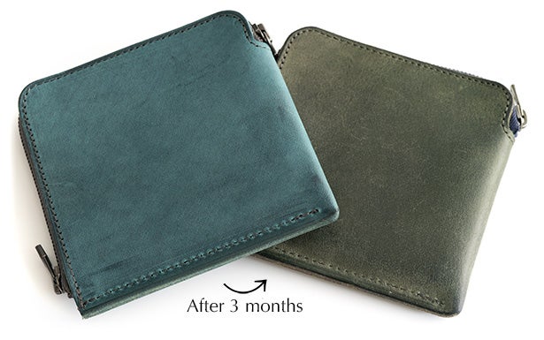 コーティングしないので表面は柔らかく傷つきやすいですが、多少の傷は指で擦れば自然に回復します。深い傷も、エイジングとともに馴染み、革の風合いへと変化していきます。