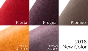標準的なテクスチャーは、イタリア語で「滑らか」という意味のリスシオ(Liscio)というシリーズです。その名の通り、滑らかで、吸い付くような質感。原皮の表情がわかる透明感があり、色艶の深まりが素晴らしく、エルバマットの最もベーシックなテクスチャーです。色名も、「緑」や「青」などと異なり、イメージがしやすい洒落た名前がつけられています。