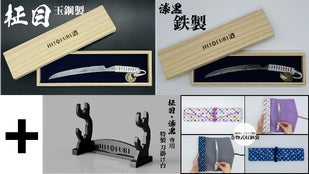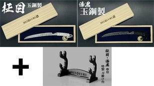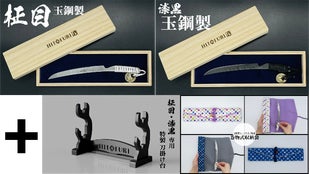 玉鋼製【柾目】 ・鉄製【漆黒】&専用刀掛け台&巻物式収納袋2枚