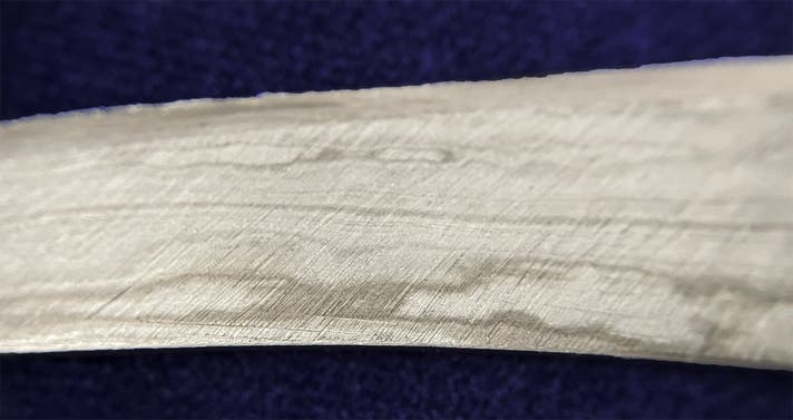 「日本刀」ならではと言われる刀身の肌目模様。本来は目には見えない部分まで、特殊な加工により、模様として浮き上がらせることに成功しました!!