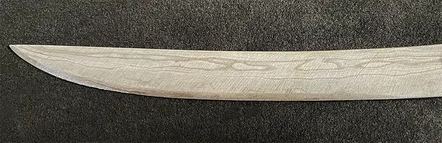 玉鋼を打ち伸ばして何度も折り返すことによって生まれる鋼の層からなる肌目を、より見やすくするための処理を施すことによって、 独特な模様が浮かび上がった刀身となりました。