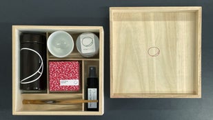 HITOHUKUの商品が入ったプレミアムボックス。茶箱を、現代に馴染める形にアレンジ。