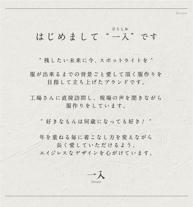 - 【残したい未来に今、スポットライトを】ファッションとして楽しみながら日本の工場さんを応援!
