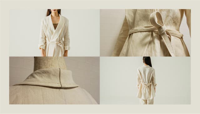 綿や和紙というとどちらかという”ナチュラル” ”優しい”そんな雰囲気でお洋服に仕立てられることが多いイメージですが、