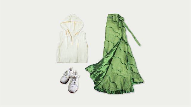 カシュクールブラウス1点・フード付きプルオーバー1点・タックワイドパンツ1点