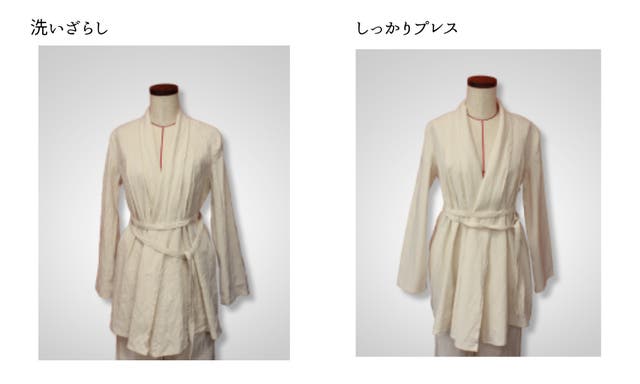 ナチュラルな凹凸感が魅力の生地ですのでそのまま着用ください。
