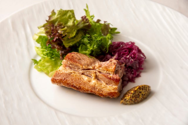 そのあとにサッと焼いて、香ばしさを加えた塩豚は、箸でもスッと切れるほどの柔らかさ。