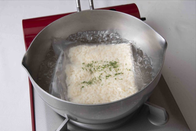 ・鍋に湯を沸騰させてから弱火にし、袋の封を切らずにそのまま熱湯に入れ、3〜5分温めて器に移してお召し上がりください。