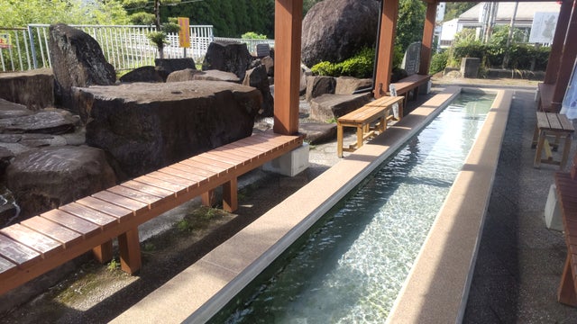 道の駅樋脇「遊湯館」にある足湯です。地元、市比野温泉の「美人の湯」が一年中、無料でご利用いただけます。この美人の湯は第17代藩主、島津光久公に「これぞ天下の名泉」と言わしめた由緒ある温泉です。温泉の特徴は何と言ってもお湯の透明感!湯口から注がれる新鮮な温泉は清冽で濁りがありません。まるでローションのようにツルツルスベスベで、いかにも肌に優しそうな爽快感たっぷりの温泉です。