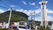 写真は樋脇町のシンボル「丸山」と遊湯館の「時計台」です。樋脇町はホッケーの町として名声を上げていた事から、時計台はホッケースティックを型取っています。