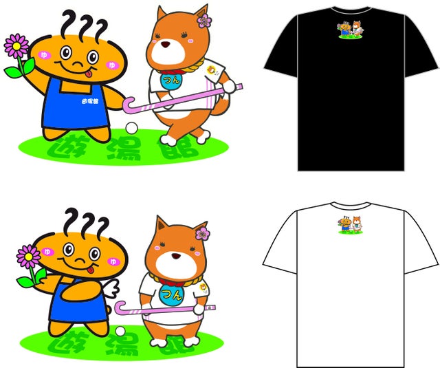 ポロシャツには、薩摩川内市のマスコットキャラクター:「つん」&遊湯館のゆるキャラ「ゆうゆうくん」がコラボ。