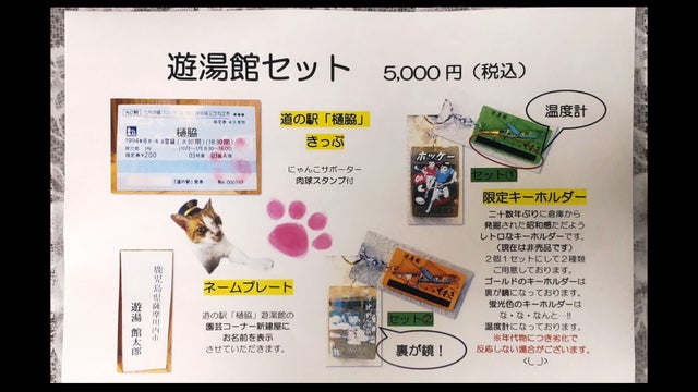 2,地元、市比野温泉の「薩摩の里」(http://satsumanosato.jp/)の一泊二食付き宿泊チケット(一名様)を28,000円にてご提供。