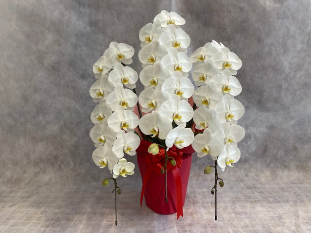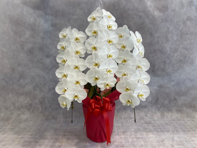 大輪3本立てで33輪以上の胡蝶蘭をお届けいたします。