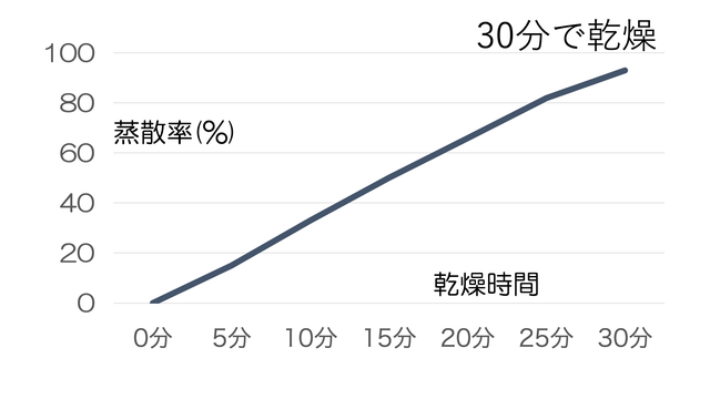 このテストは環境温度が20℃以下です。温度が高い夏季の場合、気化熱による冷却効果はより期待できます。