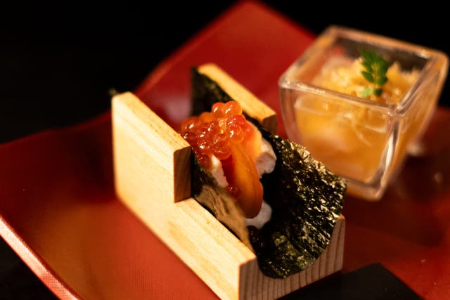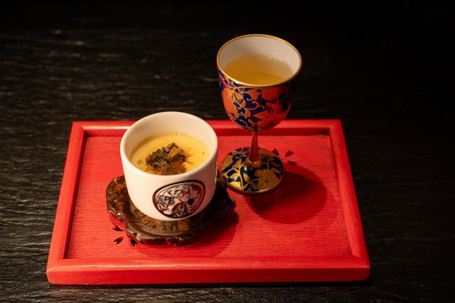 -日本食文化を語るうえで、一番にあげられのが出汁だと考えております。本枯節、利尻昆布、どんこ椎茸のNOTEを鶏の命が始まる卵と合わせてお愉しみいただきます。-