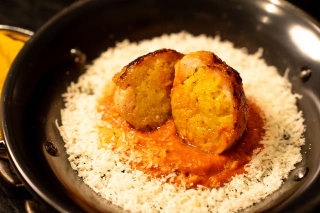 -自分のスペシャリテの一つである、オリジナルのモレ。ジャークシーズニングの香りを纏った濃厚な旨味をもつ庄内鴨と合わせて、贅沢なカツサンドに。-