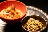 -ドバイのレストランで食べた、フムスやデュカ。仕事をした鶏の内蔵と合わせることで互いの良さを引き出す組み合わせ。-