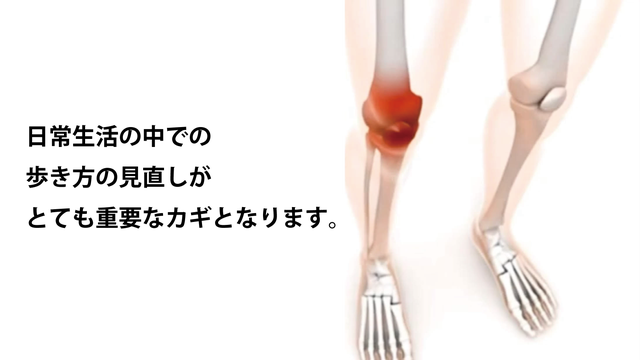 正確な歩き方に戻し、あなたの膝にかかる負担を減らしましょう。