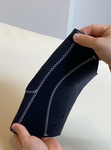 きっかけは、前プロジェクト製品を浅草の創業20周年以上のサポーター会社、ヘルスポイント有限会社の作田社長が購入してくださったことから。プロジェクト成功後、製品が思うように世の中に広がらないと悩んでいたところで繋がったご縁。「ぜひお会いしたいです!」とお伝えしたところ、お忙しい中お会いいただいて。物を作るとはどういうことか、販路を広げる方法とは、継続していくために大事な事とは…多くの答えやヒントを社長自身のご経験から教わりました。そうして帰るまえに、「理学療法士としての経験と、国内に数台しかないミシン、熟練の技で、新しいサポーターを作れませんか?」とお声かけを頂いて。実は、良いものが作れる自信がなくて2度お断りしているのですが、数種類の立体サポーターを交互に着けながら過ごす中で、立体縫製ならではの「カーブと反対方向に曲げると元に戻ろうとする性質」と「パーツの取り方ひとつ、縫製角度ひとつで、着用感が全然違う」ということに気付いて。「これなら、私自身がずっと欲しかったサポーターを設計できる!」…3か月後、第1試作が完成しました。作田社長や昔から応援してくれている仲間のセラピスト達から着用感をフィードバックしていただいて微細調整。「納得いくものを、良いものを作りましょう」と言っていただき何度も試作を重ねて、ついに完成。10年近く共に研鑽をつんでいる理学療法士の先生のクリニックでも試してもらいました。
