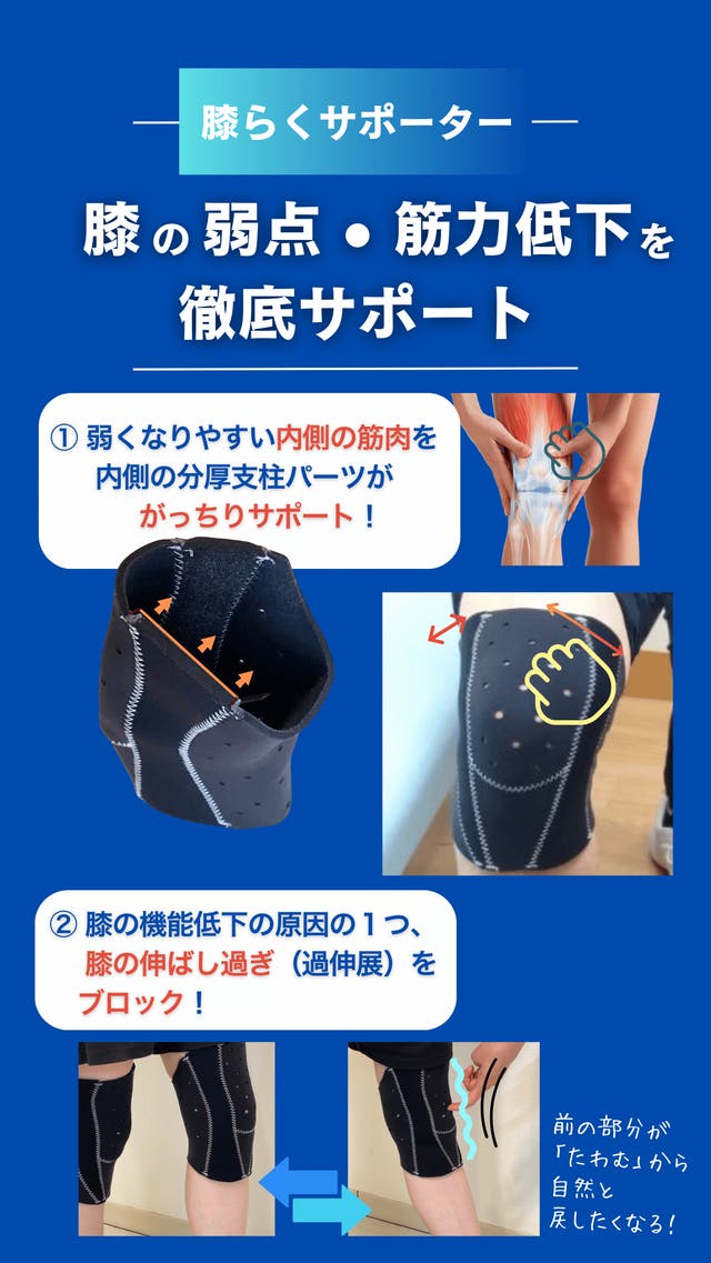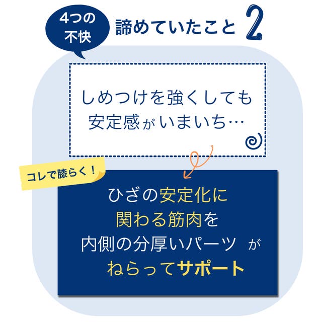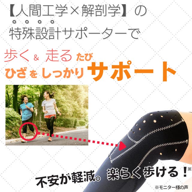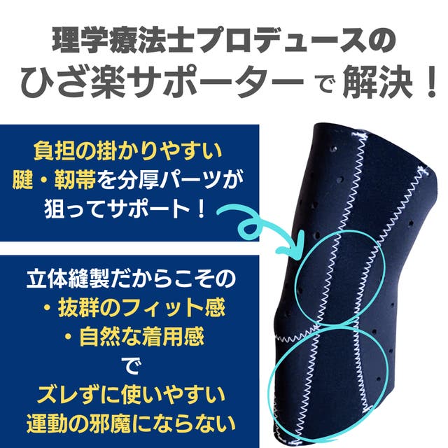 - 解剖学にもとづき、膝の負担が掛かりやすい部位を”狙って”サポ―ト