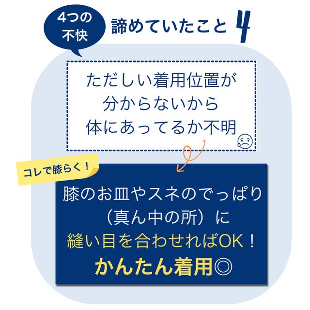 膝のお皿に合わせるだけで、簡単に正しい位置へ着けられる◎