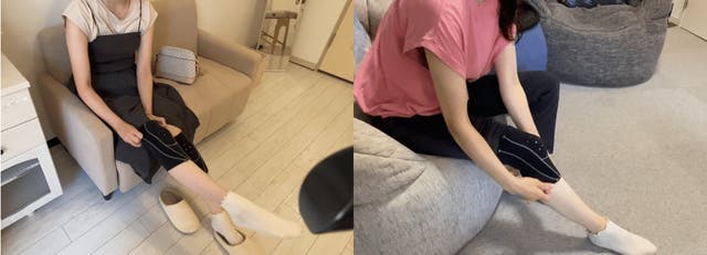 出先で快適に過ごすための膝サポートに。薄手だから、服のしたでも目立ちにくい◎