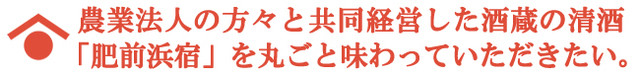 六次産業化酒蔵が造った、佐賀県産米使用の佐賀酒「肥前浜宿」をお届け。