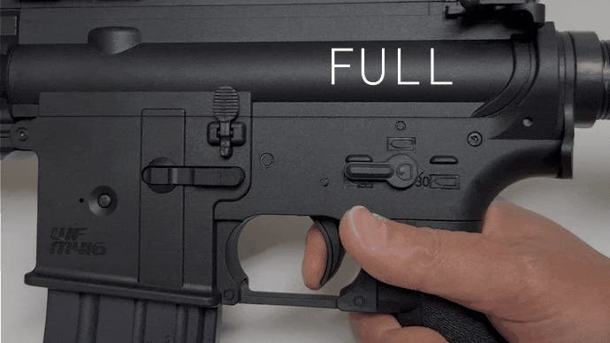 SAFE/SEMI/FULLのセレクターは実銃同様の操作で切り替えます。