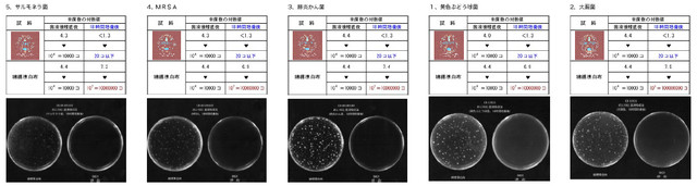 その他、サルモネラ菌や大腸菌など実験効果も得ています!