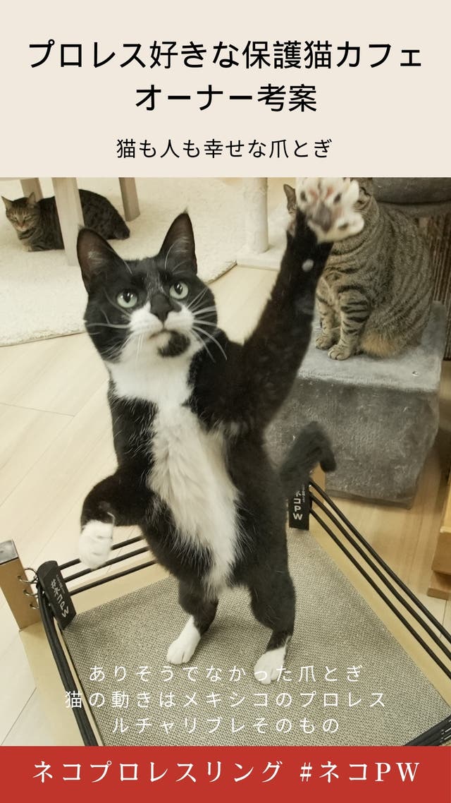 - 沢山の保護猫たちと共に生活をしているプロレス好きな保護猫カフェのオーナー考案