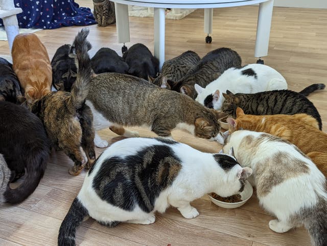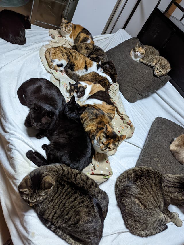 現在お店に27匹。そして自宅に28匹の猫たちに囲まれて生活をしています。