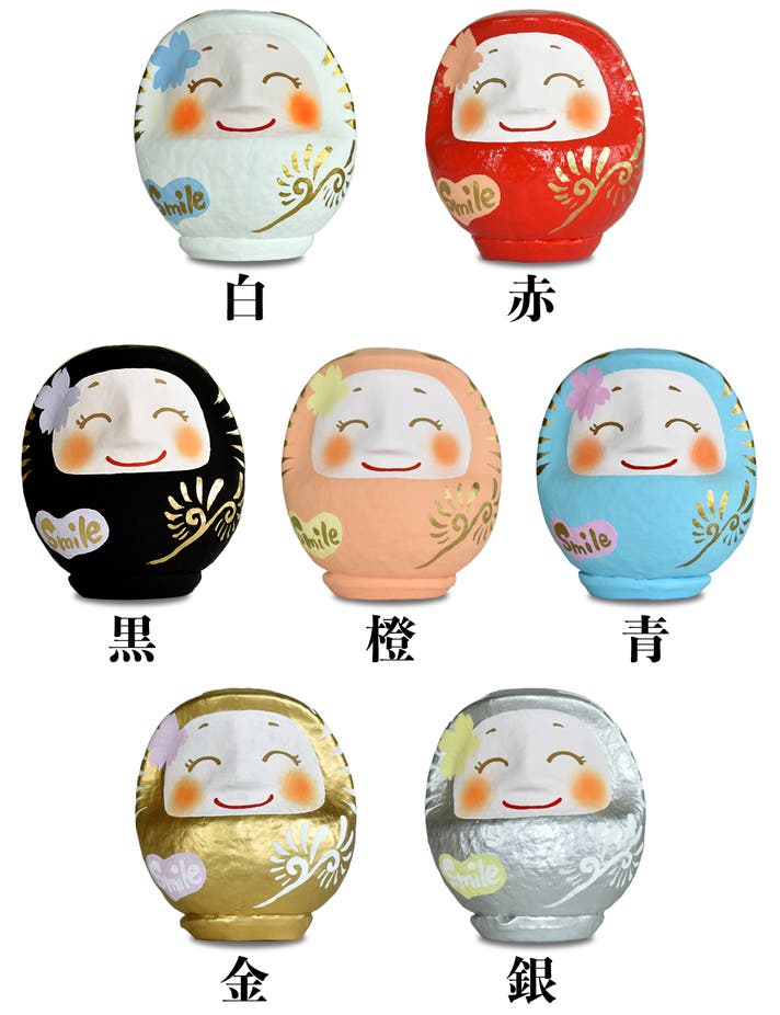 ほほえみダルマ7色のうちお好きな色を1個お選びいただけます。