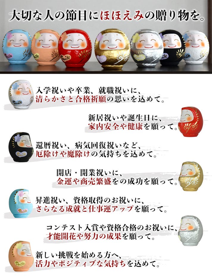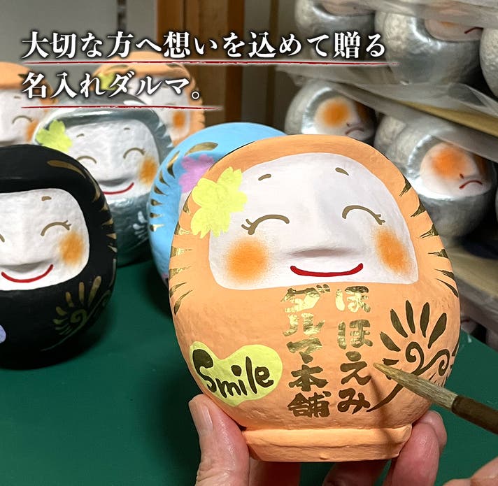 ほほえみダルマ本舗は、笑顔の連鎖をテーマに掲げるダルマ専門工房です。